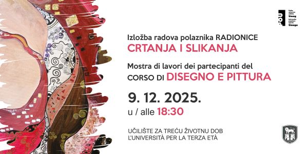 Mostra di lavori dei partecipanti del corso di disegno e pittura, nell’ambito dell’Università per la terza età, comprende opere realizzate nella primavera e nell’autunno 2025, sotto la guida di Jelena Zec, mag.art.